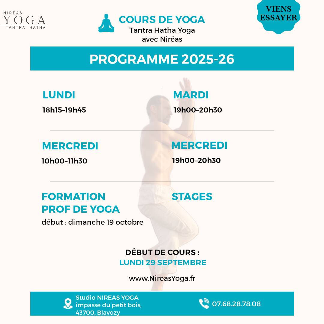 Tous les cours, qu'ils soient collectifs ou individuels, en présentiel ou en visio, sont une expérience complète de Tantra Hatha Yoga intégrant : Asanas, Pranayamas, Bandhas, Mudras, Relaxation et Méditation.